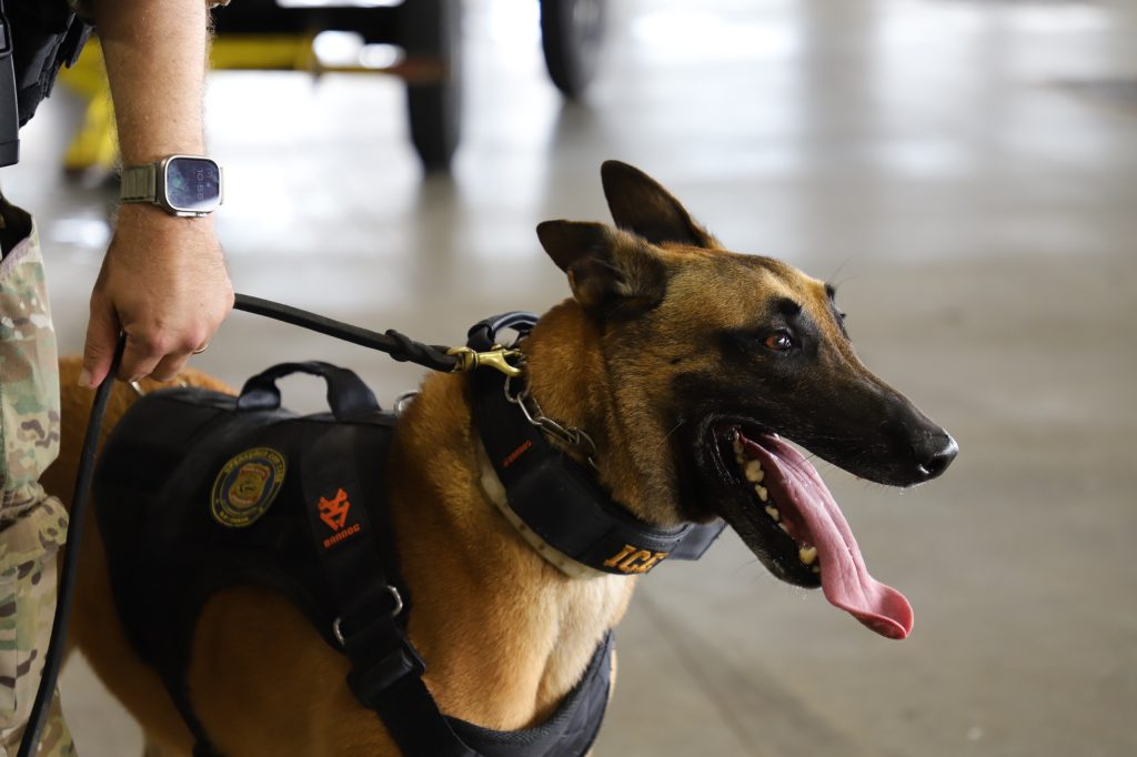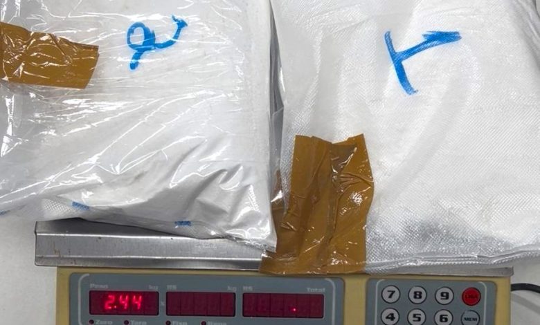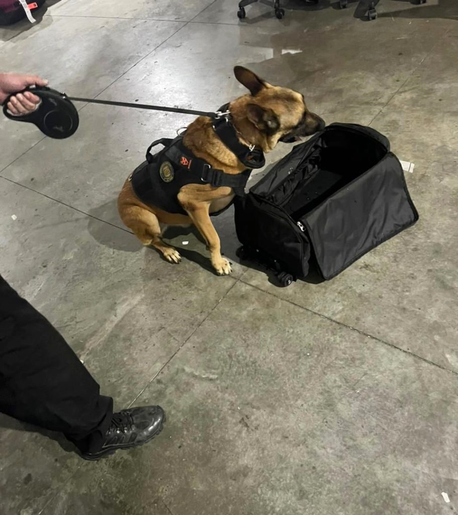 A droga foi localizada durante ação de fiscalização de rotina, com o apoio do cão detector de drogas Ice, que indicou a presença de substância ilícita em uma das malas vistoriadas.